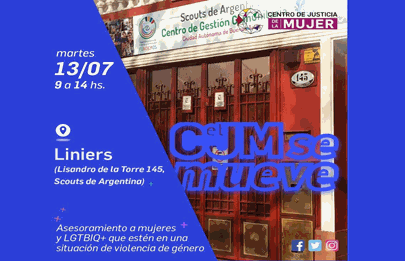 Este martes 13 de julio, en Liniers se realizarán acciones y actividades para asesorar a mujeres y diversidades frente a situaciones de violencia de género en la sede de Scouths Argentina gestión comunitaria, ubicada en la calle Lisandro de la Torre 145.