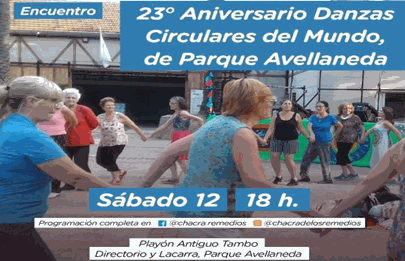 Los días sábado 12 y domingo 13 habrá una a gran cantidad de actividades para público de todas las edades en el Parque Avellaneda, el espacio Cultural Chacra de los Remedios presenta espectáculos libres y gratuitos en el Playón del Antiguo Tambo, en esta ocasión habrá infantiles, musicales, magia, circo, y el festejo del 23 aniversario del encuentro de Danzas Circulares como informáramos ayer.