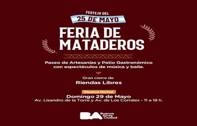La lluvia del pasado miércoles 25 de mayo no permitió que se realizarán las habituales actividades conmemorativas de la Revolución de Mayo en la Feria de Mataderos, pero este domingo en su horario tradicional se llevarán a cabo los festejos, en la esquina de Lisandro de la Torre y Avenida de Los Corrales.