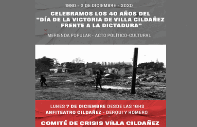 El próximo lunes 7 de diciembre se celebran las cuatro décadas de la victoria de los vecinos y vecinas de Villa Cildañez (hoy barrio de Parque Avellaneda / Comuna 9) frente a la Dictadura Militar y habrá un acto político cultural.