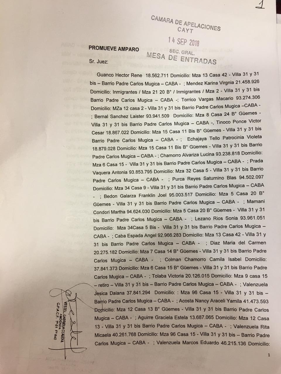 contemplados en la Ley 3343 del año 2009 a pesar de esta situación, la iniciativa del Gobierno de la Ciudad de Buenos Aires a la Legislatura Porteña fue unilateral. El Recurso de Amparo fue acompañado con más de un centenar de firmas y presentada la semana pasada en el juzgado de la magistrada Elena Liberatori, bajo el patrocinio de las abogadas Noelia Lezcano y Gabriela Vestel. De acuerdo a la información suministrada por la organización “Nace Un Derecho”, afirman que: Mientras que las obras se comenzaron sin participación de lxs vecinxs y mucho menos con el consenso de éstos. Además, el proyecto que envió el Ejecutivo fue sin la consulta a la Mesa Participativa, lo cual está contemplado en la ley que se promulgó en 2009, siendo que a su vez los vecinxs no conocen el proyecto, ni dónde serán las aperturas de las calles, donde quedarán instaladas las viviendas, ni que sucederá con los terrenos, lo único que se sabe es lo que harán con las casas que se encuentran debajo de las autopistas. Bajo este contexto de atropello hacia los derechos de los habitantes de la Villa 31, quienes solo piden que se les respete el derecho a una vida digna y hacer valer sus derechos como habitantes de la Ciudad de Buenos Aires, y por tanto que se respete la ley vigente que rige desde el 2009, desde ésta Asociación acompañamos su reclamo bregando porque sea justicia real en pos de los intereses de la ciudadanía. Las abogadas patrocinantes de os vecinos de la villa 31 expresaron “La medida fue presentada luego de que el gobierno de la Ciudad comenzara las obras sin participación de los vecinos”. Y denuncian atropello sobre los derechos de los habitantes del barrio y piden que se respete la ley.{jcomments on}
