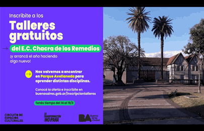 Esta semana comenzó la inscripción a los talleres en el Espacio Cultural Chacra de los Remedios y estar disponibles hasta el sábado 19, para el inicio de ciclo de talleres en el portal www.buenosaires.gob.ar/inscripciontalleres