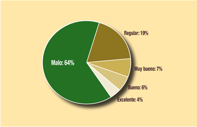 Cosas de Barrio realizó una encuesta sobre la opinión sobre el servicio de higiene urbana en la comuna 9. De acuerdo con la opinión de la gente que durante el último mes participó de la encuesta digital que Cosas de Barrio realizó en su sitio de Internet (www.cosasdebarrioweb.com.ar), el 64 por ciento de los votantes aseguró que el servicio de higiene urbana en su barrio es “malo”; otro 19% lo calificó como “regular”; un 7%, por el contrario, sostuvo que es “muy bueno”; el 6% expresó que es “bueno”; mientras que apenas el 4% restante lo tildó de “excelente” (ver gráfico).